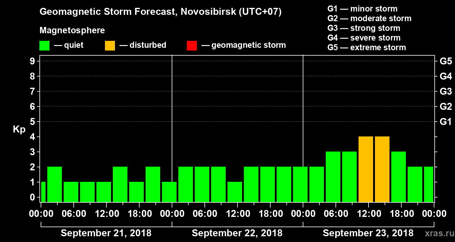 Geomagnetic storm forecast in Novosibirsk for Sep 21, 2018