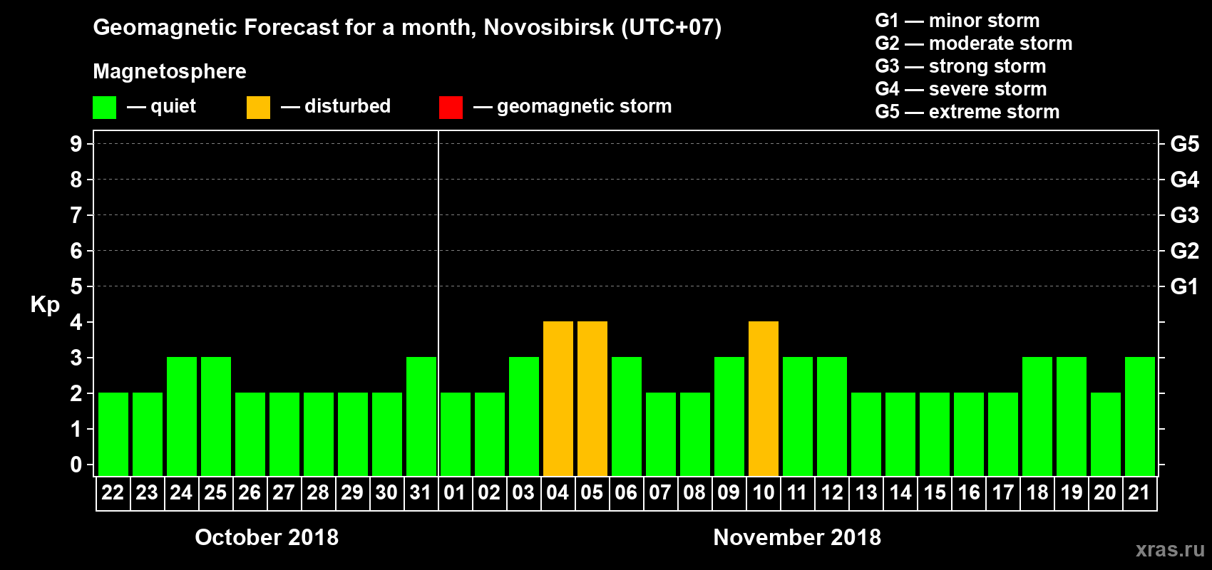 Geomagnetic activity forecast in Novosibirsk — Oct 22, 2018