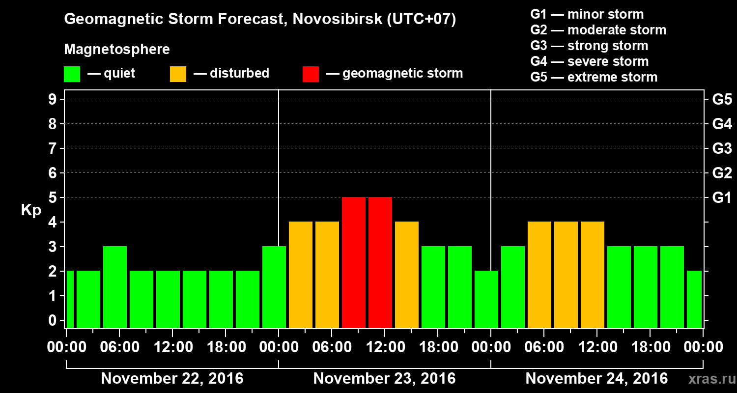 Geomagnetic storm forecast in Novosibirsk for Nov 22, 2016
