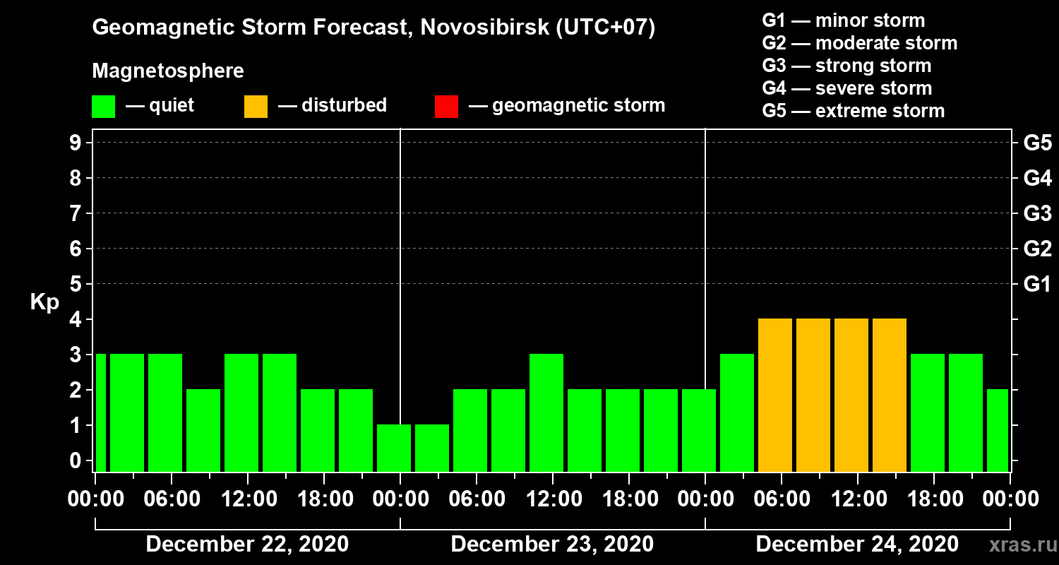 Geomagnetic activity forecast in Novosibirsk — Dec 22, 2020
