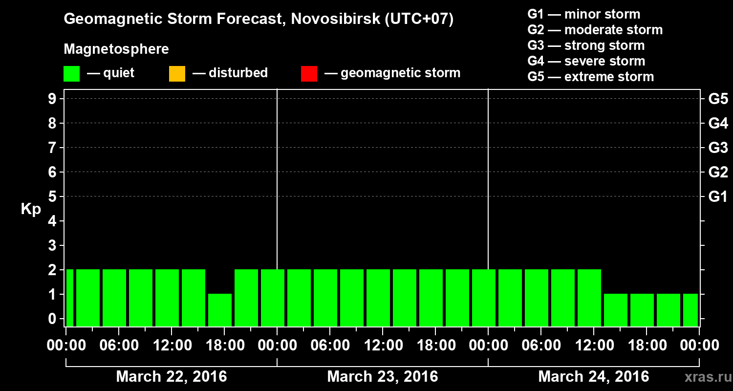 Geomagnetic storm forecast in Novosibirsk for Mar 22, 2016