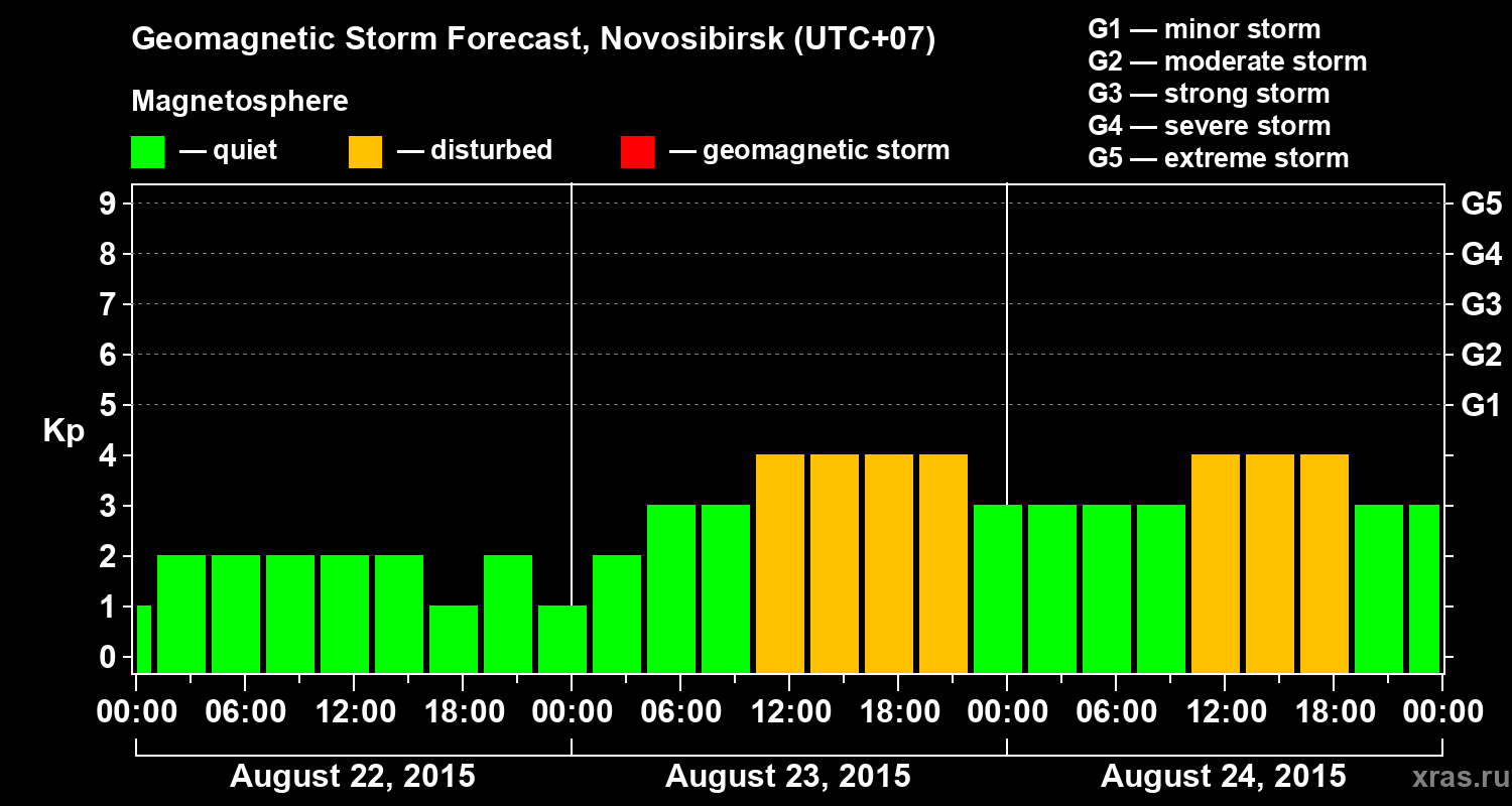 Geomagnetic storm forecast in Novosibirsk for Aug 22, 2015