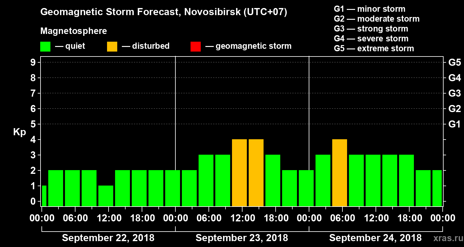 Geomagnetic storm forecast in Novosibirsk for Sep 22, 2018