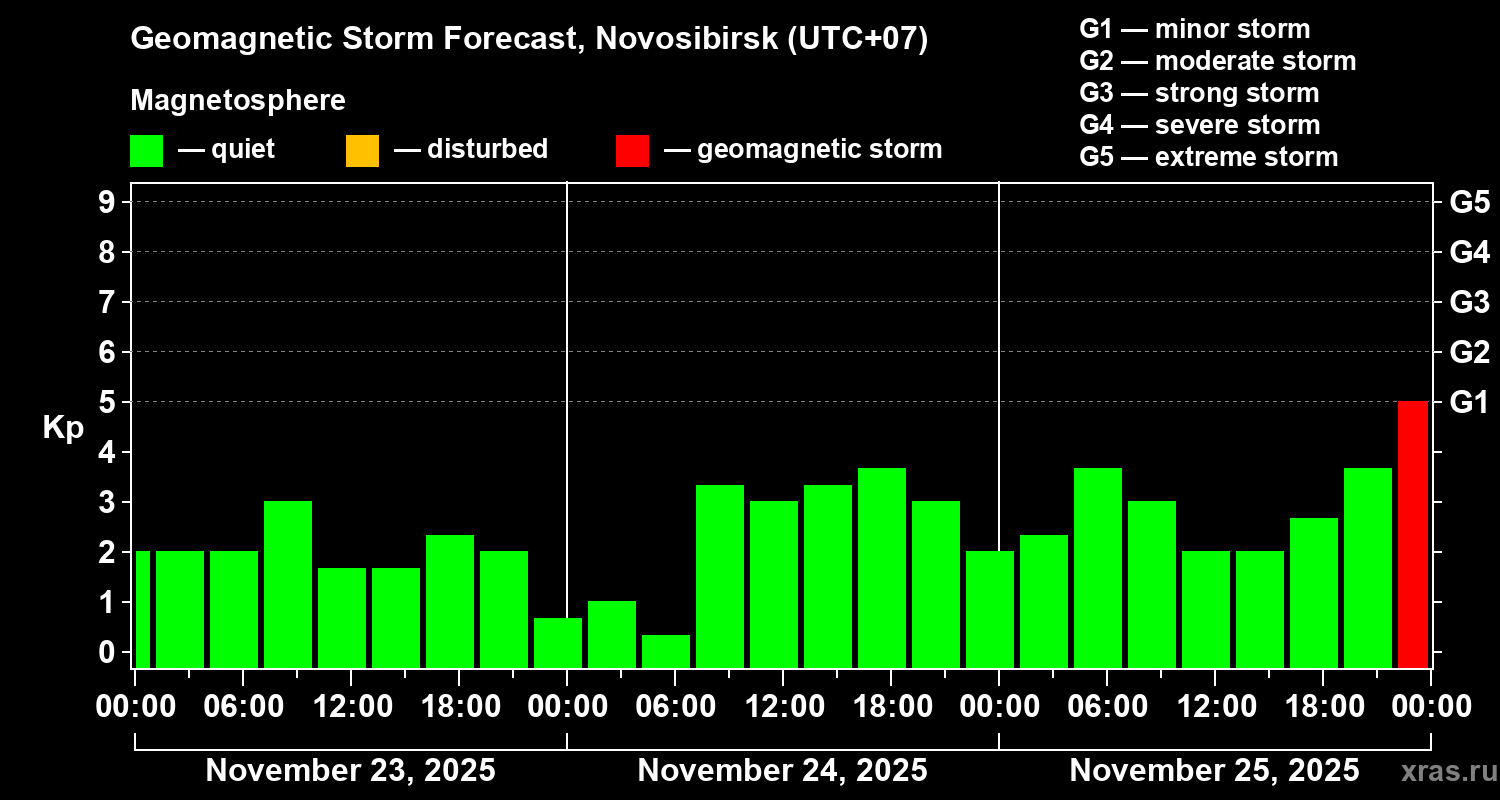 Geomagnetic storm forecast in Novosibirsk for Nov 23, 2025
