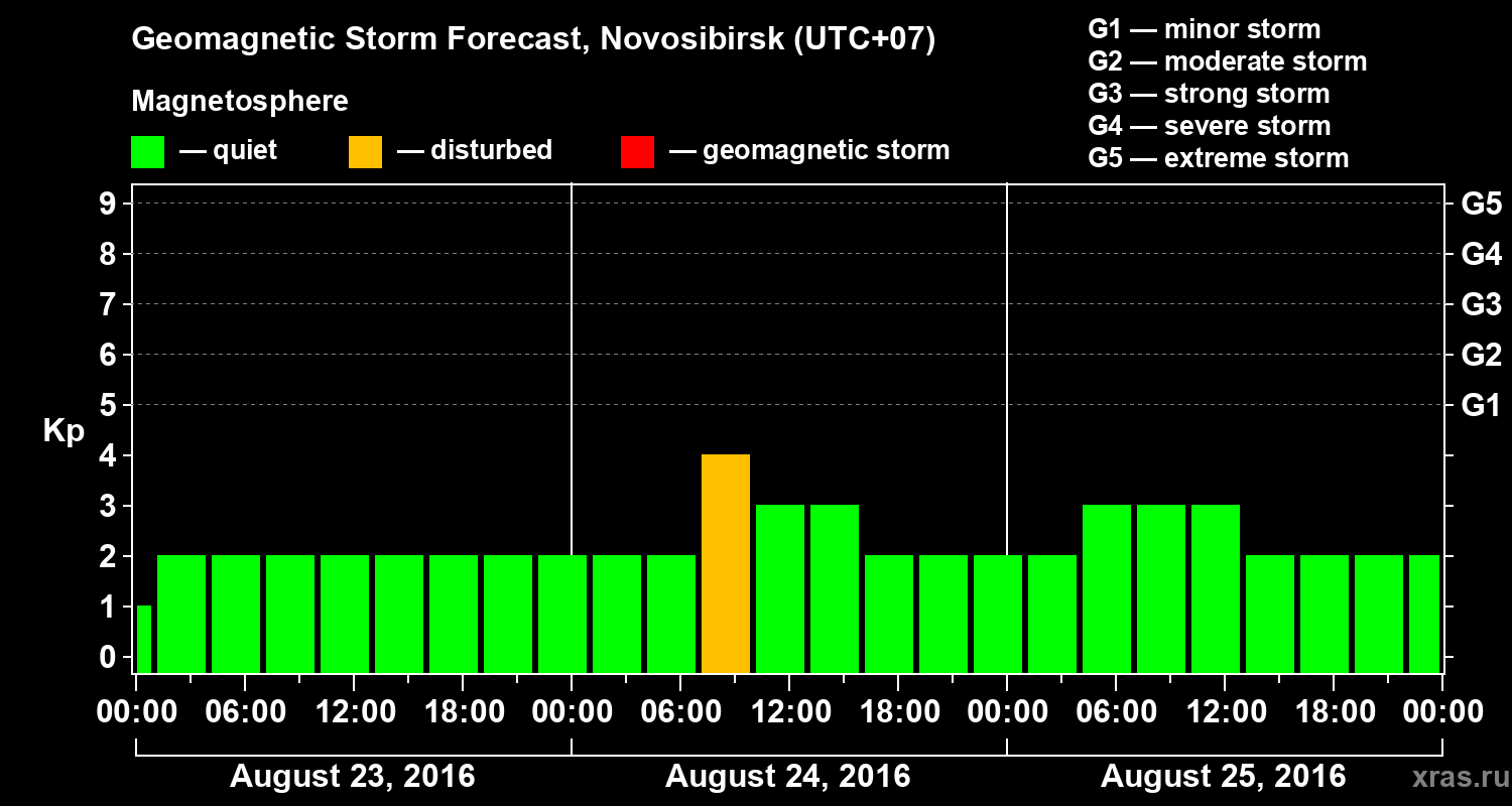 Geomagnetic activity forecast in Novosibirsk — Aug 23, 2016