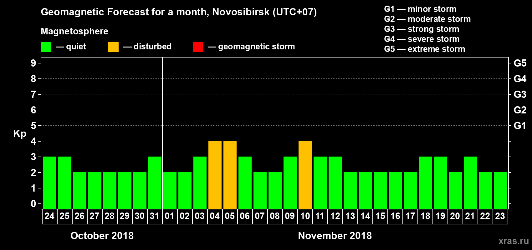 Geomagnetic activity forecast in Novosibirsk — Oct 24, 2018