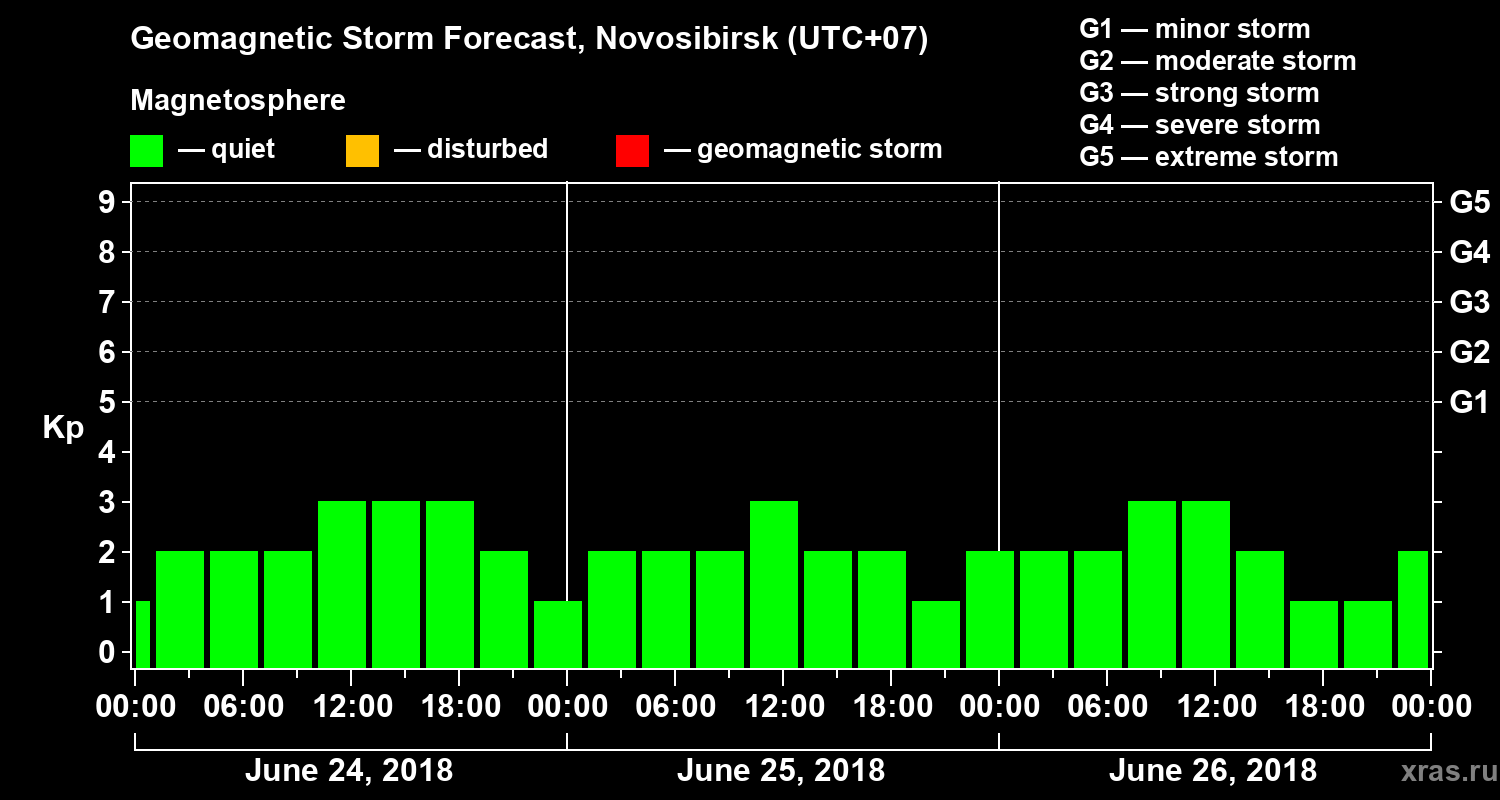 Geomagnetic activity forecast in Novosibirsk — Jun 24, 2018