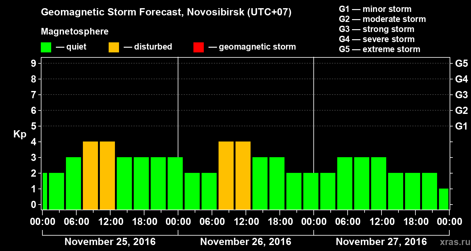 Geomagnetic storm forecast in Novosibirsk for Nov 25, 2016
