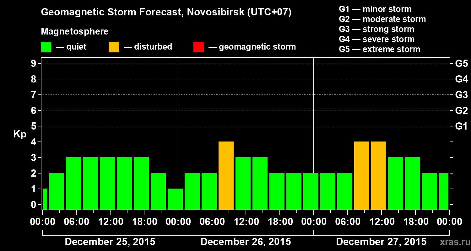 Geomagnetic storm forecast in Novosibirsk for Dec 25, 2015