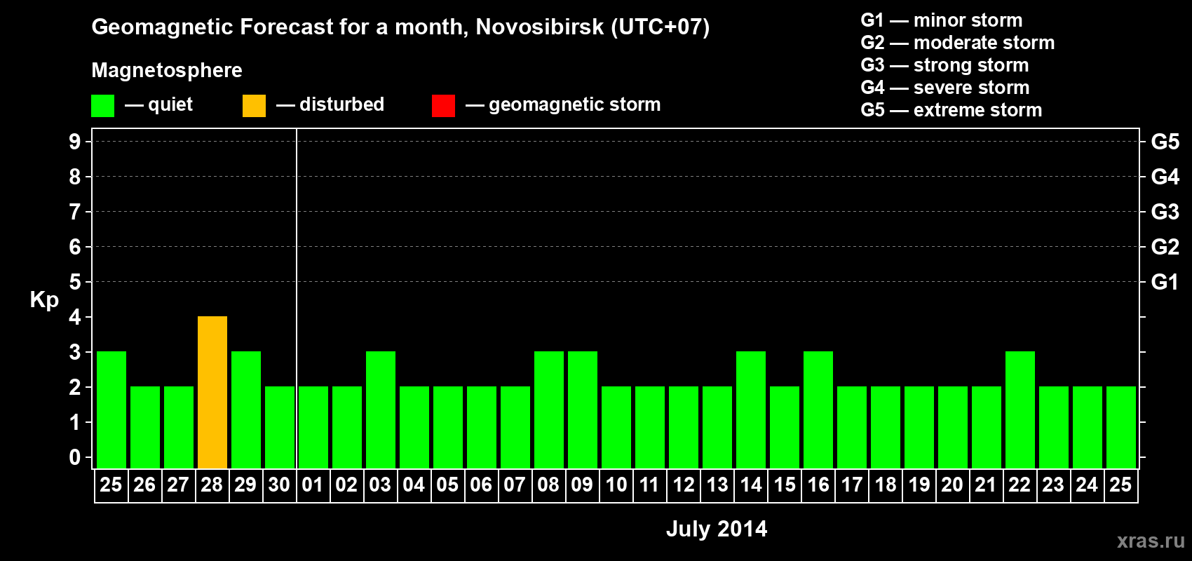 Geomagnetic storm forecast in Novosibirsk for Jun 25, 2014
