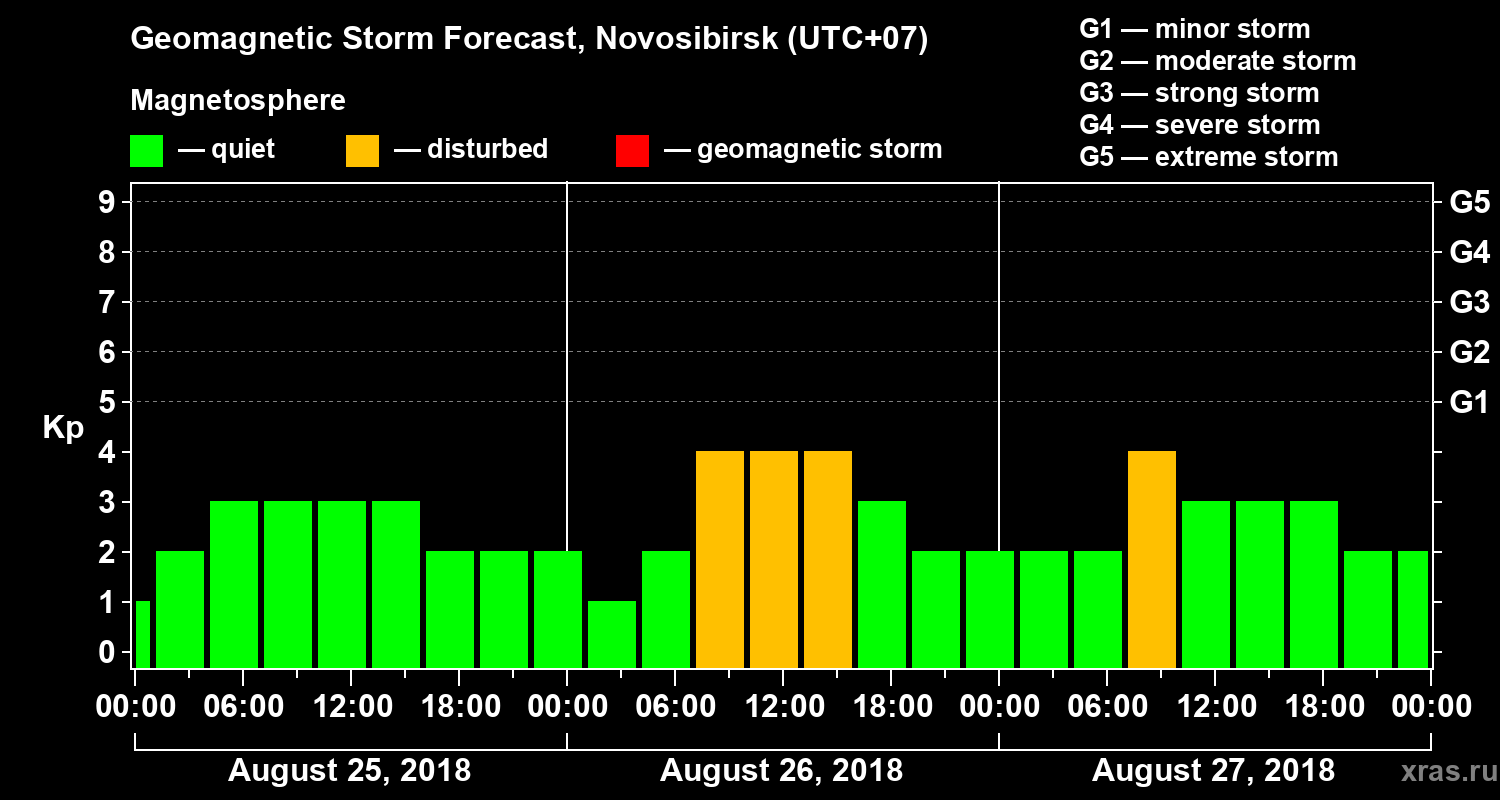 Geomagnetic activity forecast in Novosibirsk — Aug 25, 2018