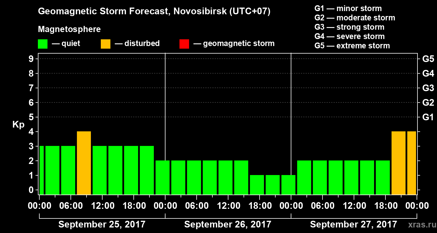 Geomagnetic storm forecast in Novosibirsk for Sep 25, 2017