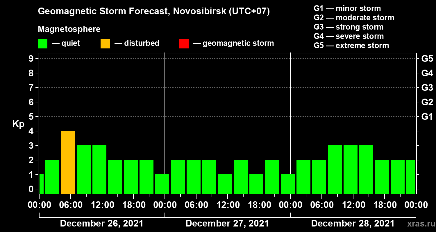 Geomagnetic activity forecast in Novosibirsk — Dec 26, 2021