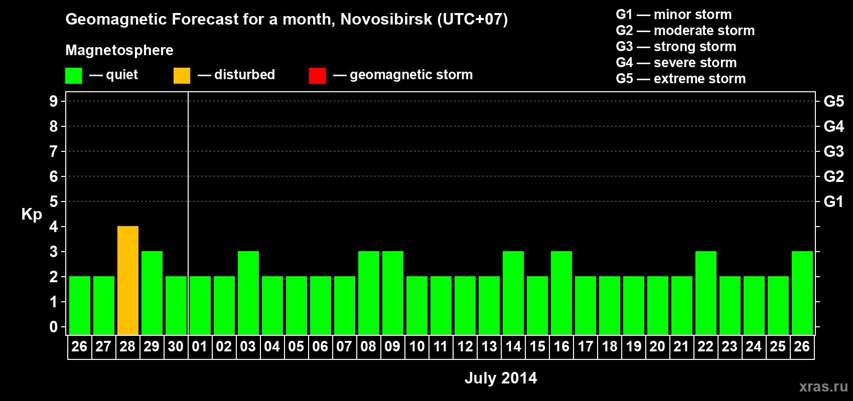 Geomagnetic storm forecast in Novosibirsk for Jun 26, 2014