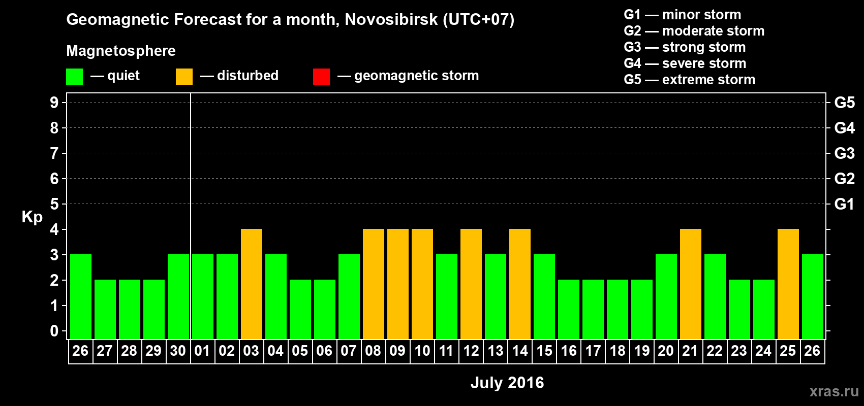 Geomagnetic storm forecast in Novosibirsk for Jun 26, 2016