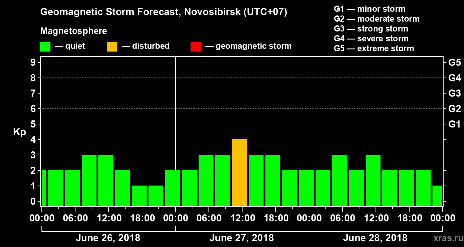 Geomagnetic storm forecast in Novosibirsk for Jun 26, 2018
