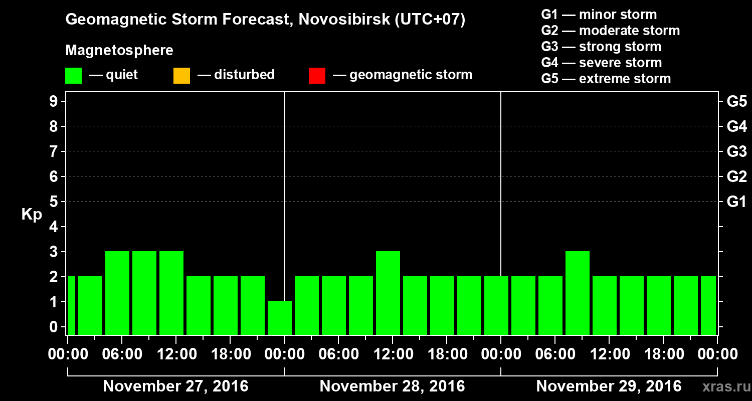 Geomagnetic activity forecast in Novosibirsk — Nov 27, 2016