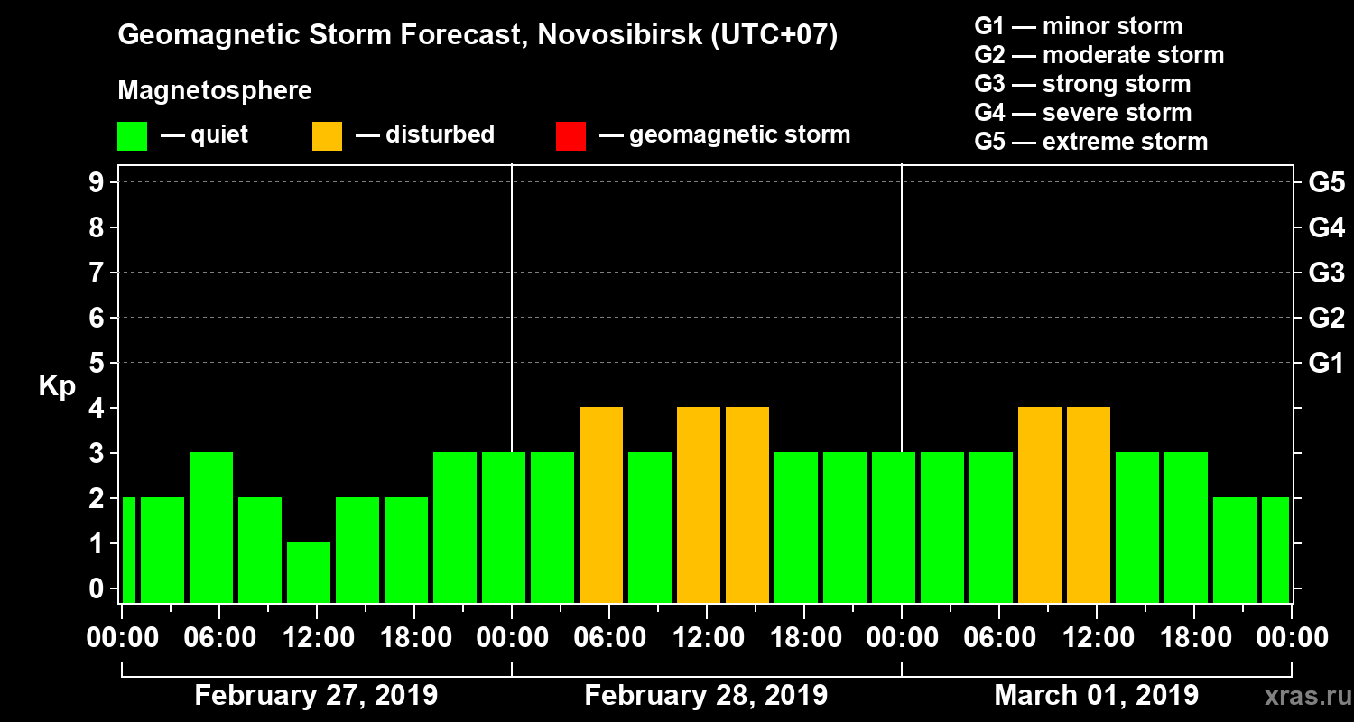 Geomagnetic storm forecast in Novosibirsk for Feb 27, 2019