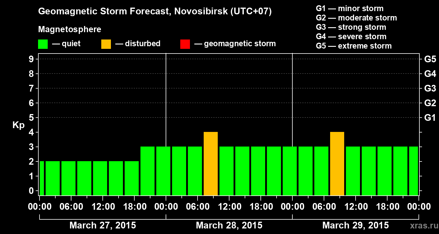 Geomagnetic storm forecast in Novosibirsk for Mar 27, 2015