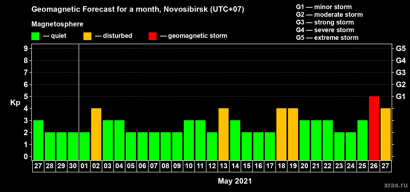 Geomagnetic storm forecast in Novosibirsk for Apr 27, 2021