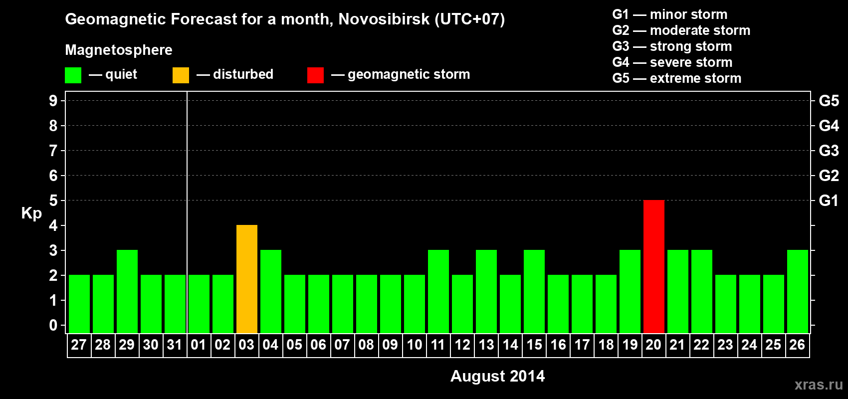 Geomagnetic storm forecast in Novosibirsk for Jul 27, 2014