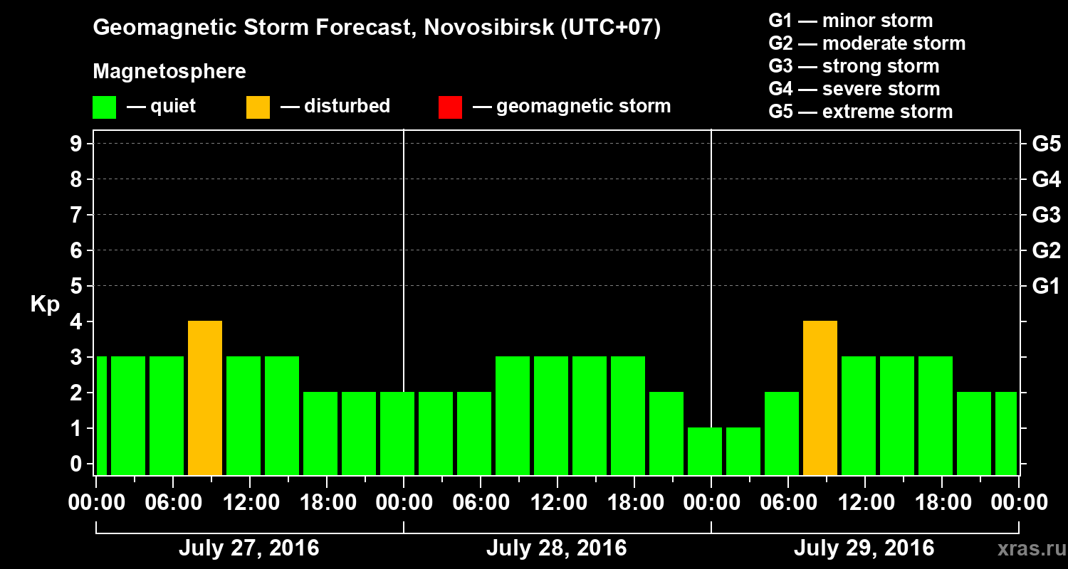 Geomagnetic storm forecast in Novosibirsk for Jul 27, 2016