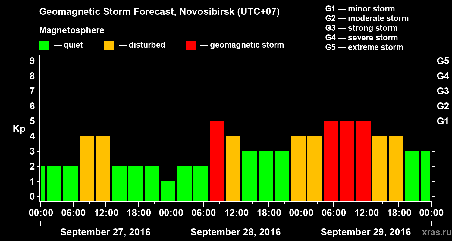 Geomagnetic storm forecast in Novosibirsk for Sep 27, 2016