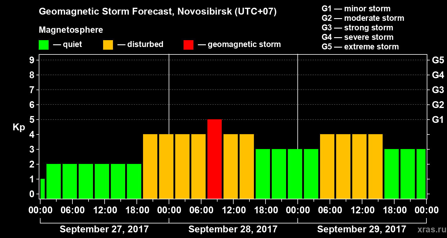Geomagnetic storm forecast in Novosibirsk for Sep 27, 2017