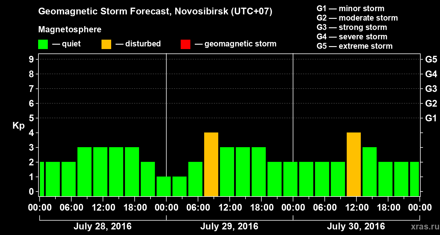Geomagnetic storm forecast in Novosibirsk for Jul 28, 2016