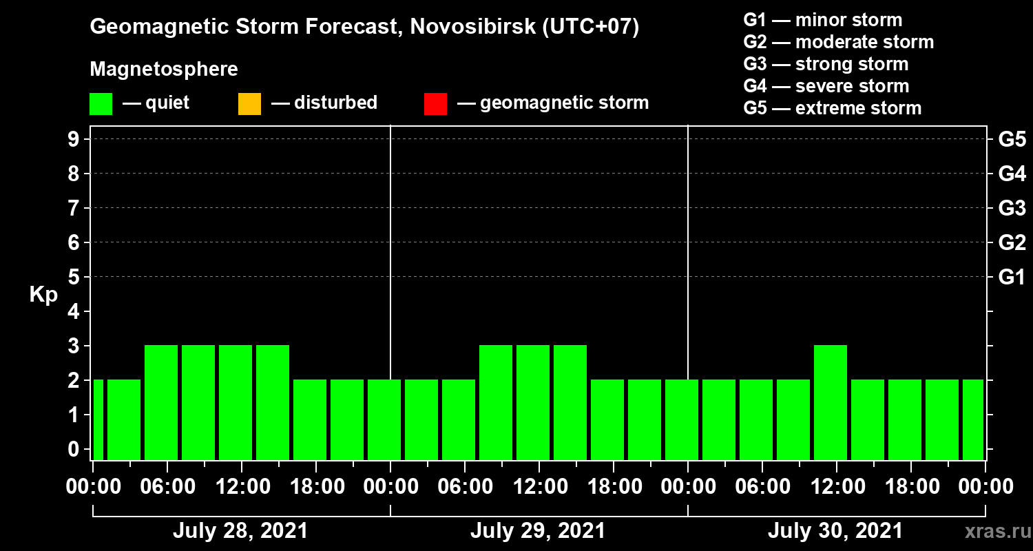 Geomagnetic storm forecast in Novosibirsk for Jul 28, 2021