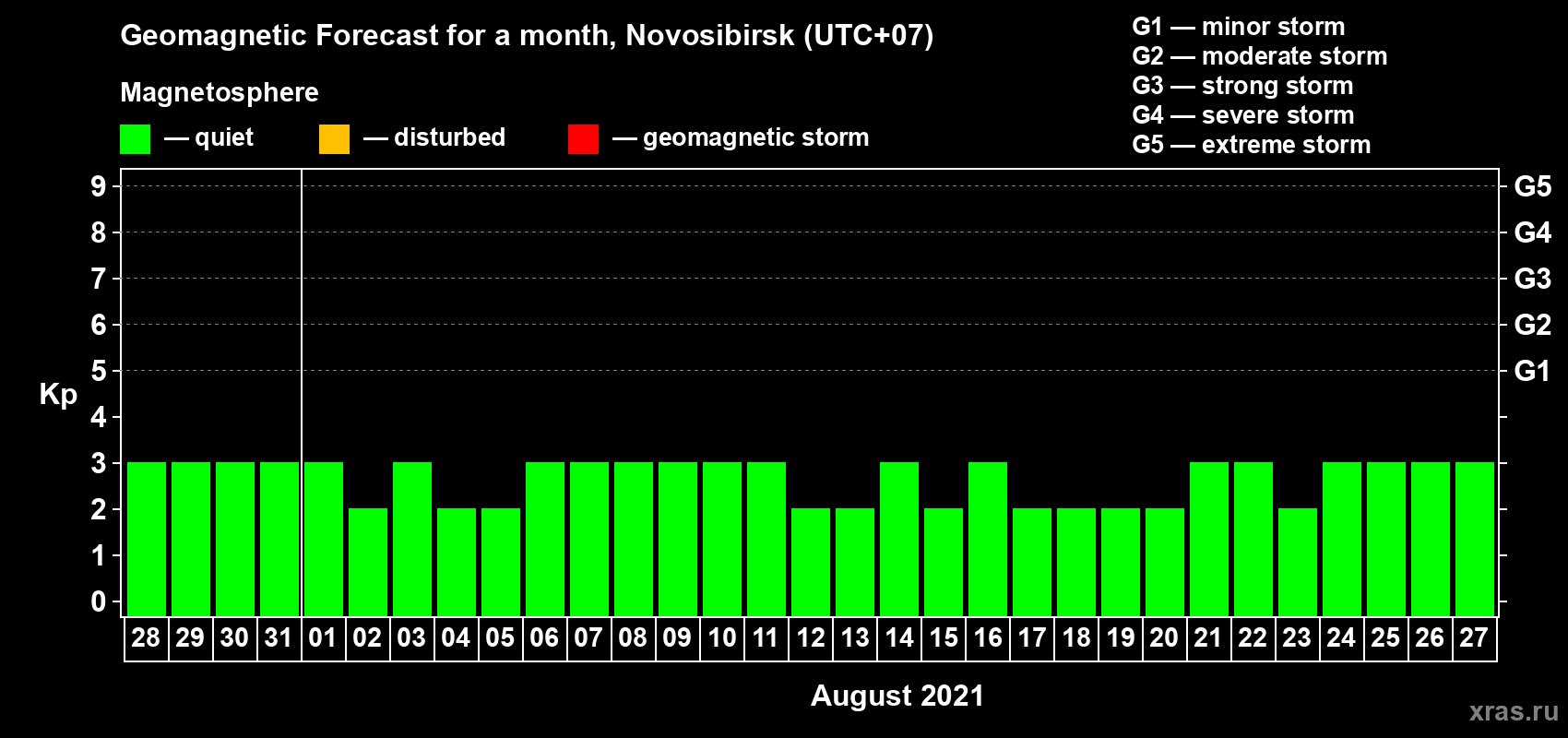Geomagnetic activity forecast in Novosibirsk — Jul 28, 2021