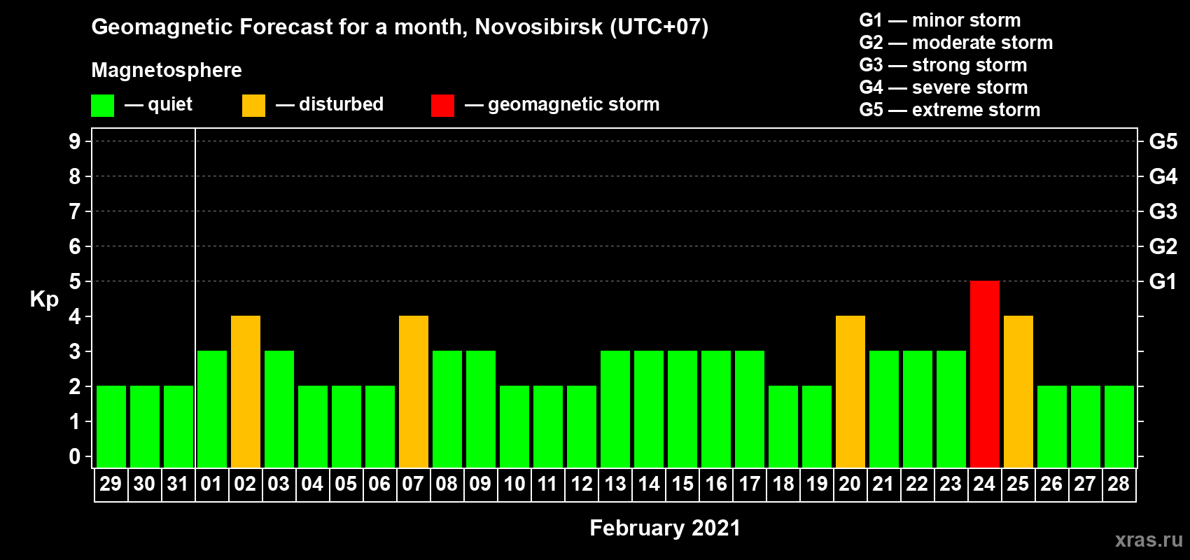 Geomagnetic activity forecast in Novosibirsk — Jan 29, 2021