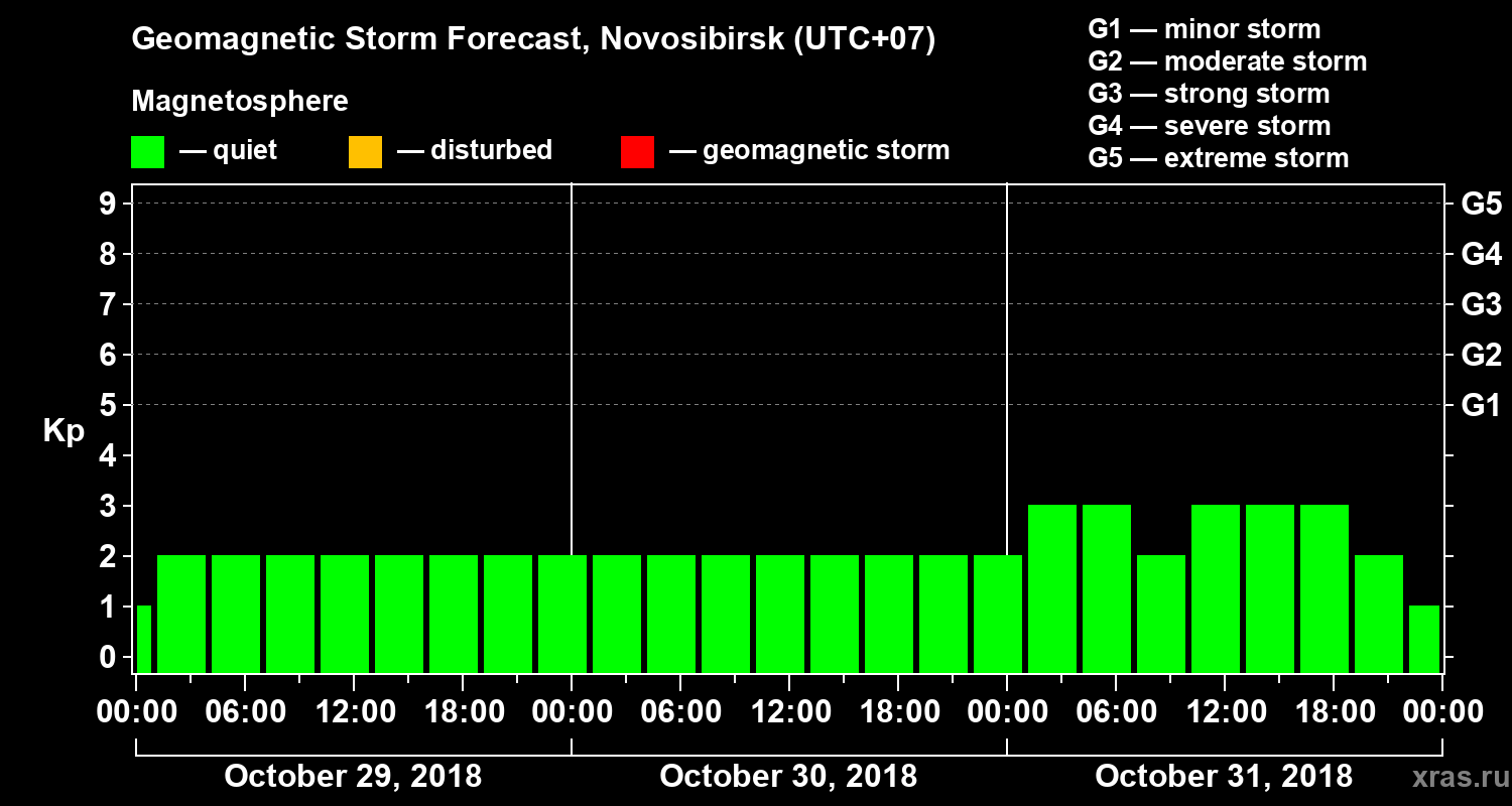 Geomagnetic storm forecast in Novosibirsk for Oct 29, 2018