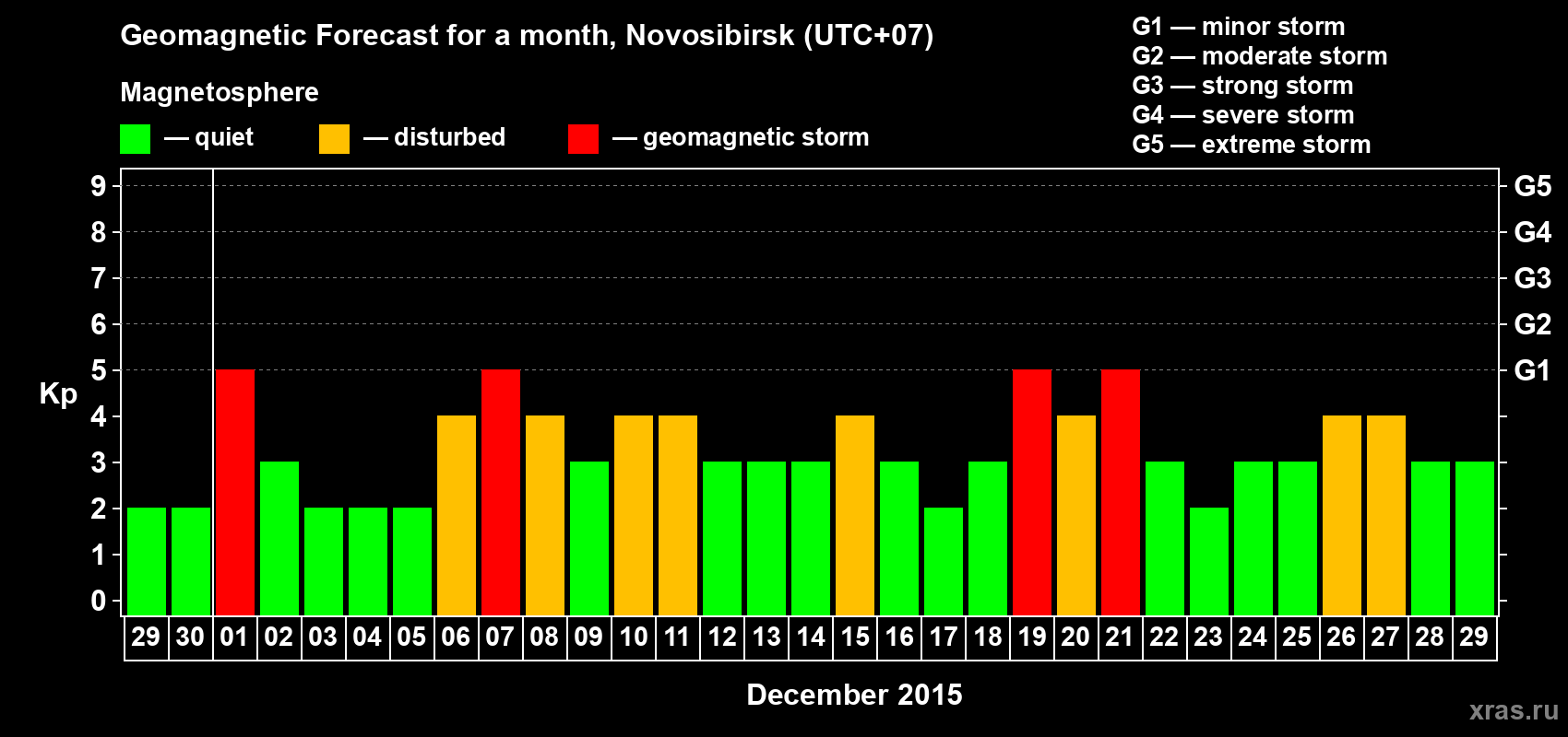 Geomagnetic storm forecast in Novosibirsk for Nov 29, 2015