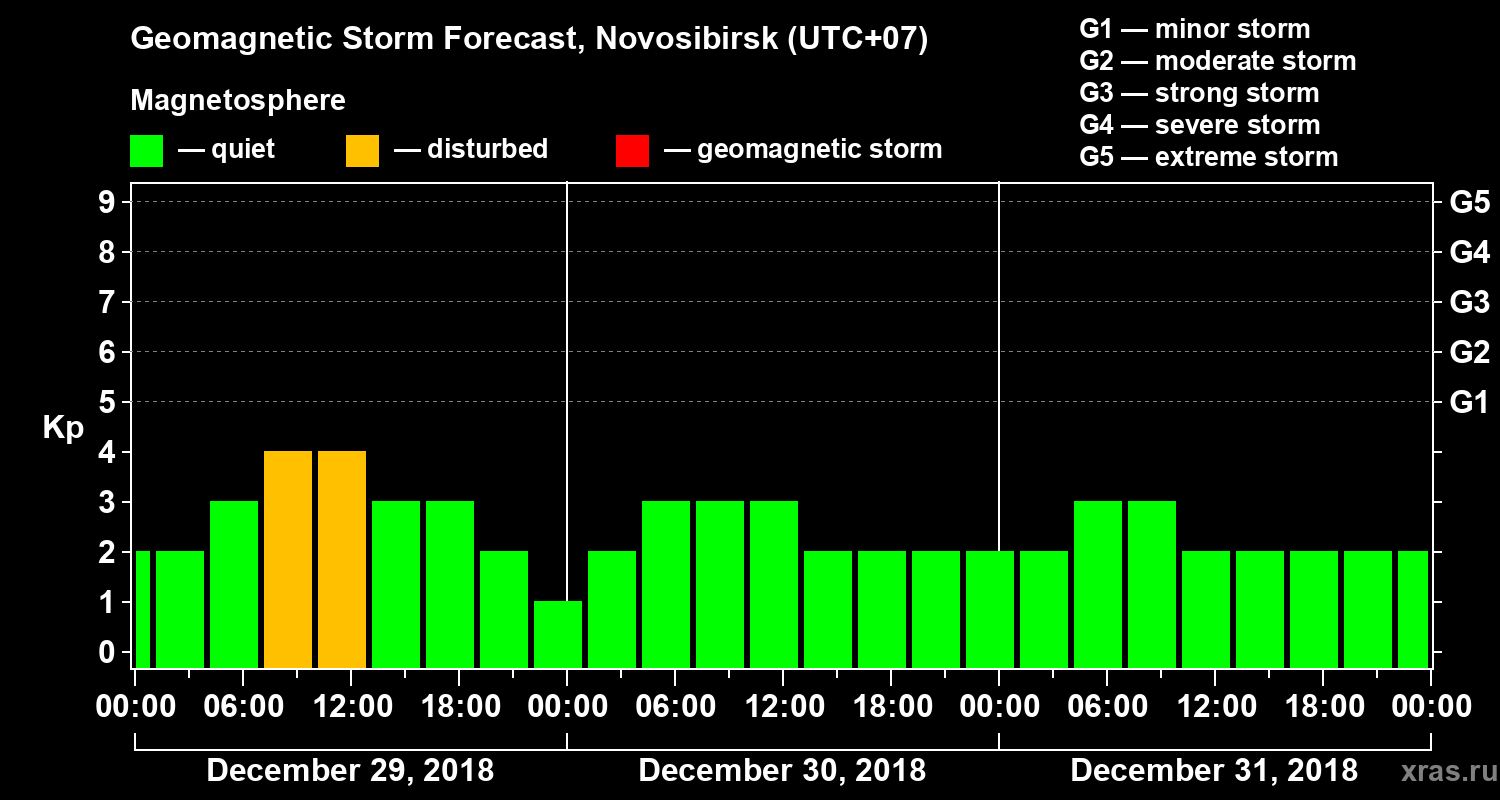 Geomagnetic storm forecast in Novosibirsk for Dec 29, 2018