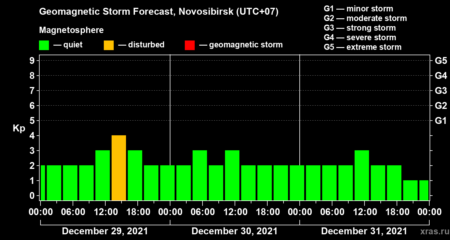 Geomagnetic activity forecast in Novosibirsk — Dec 29, 2021