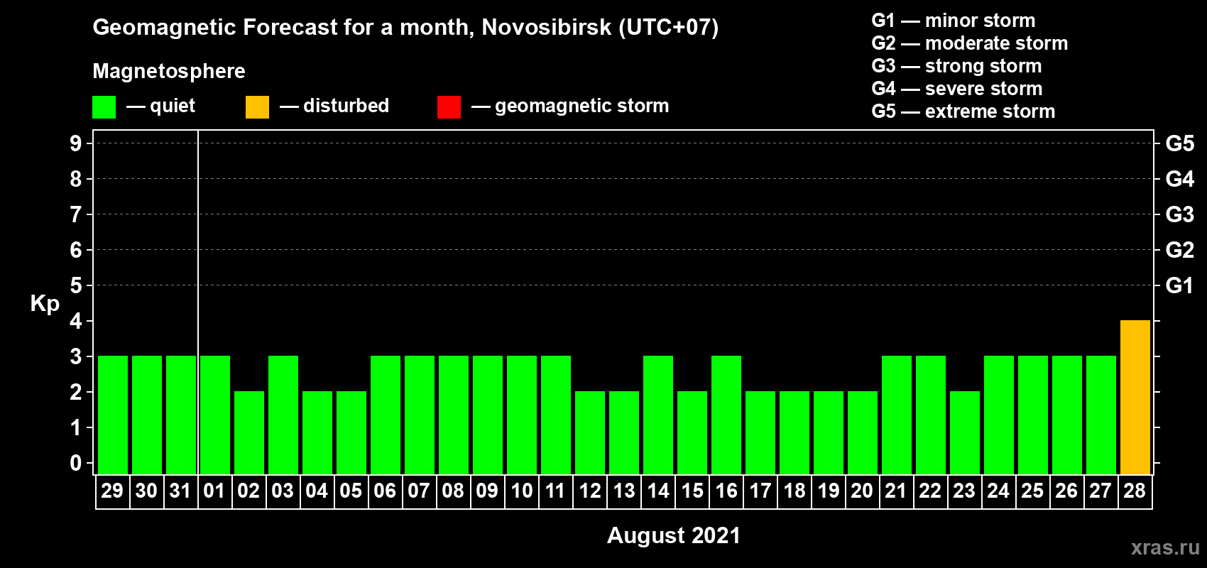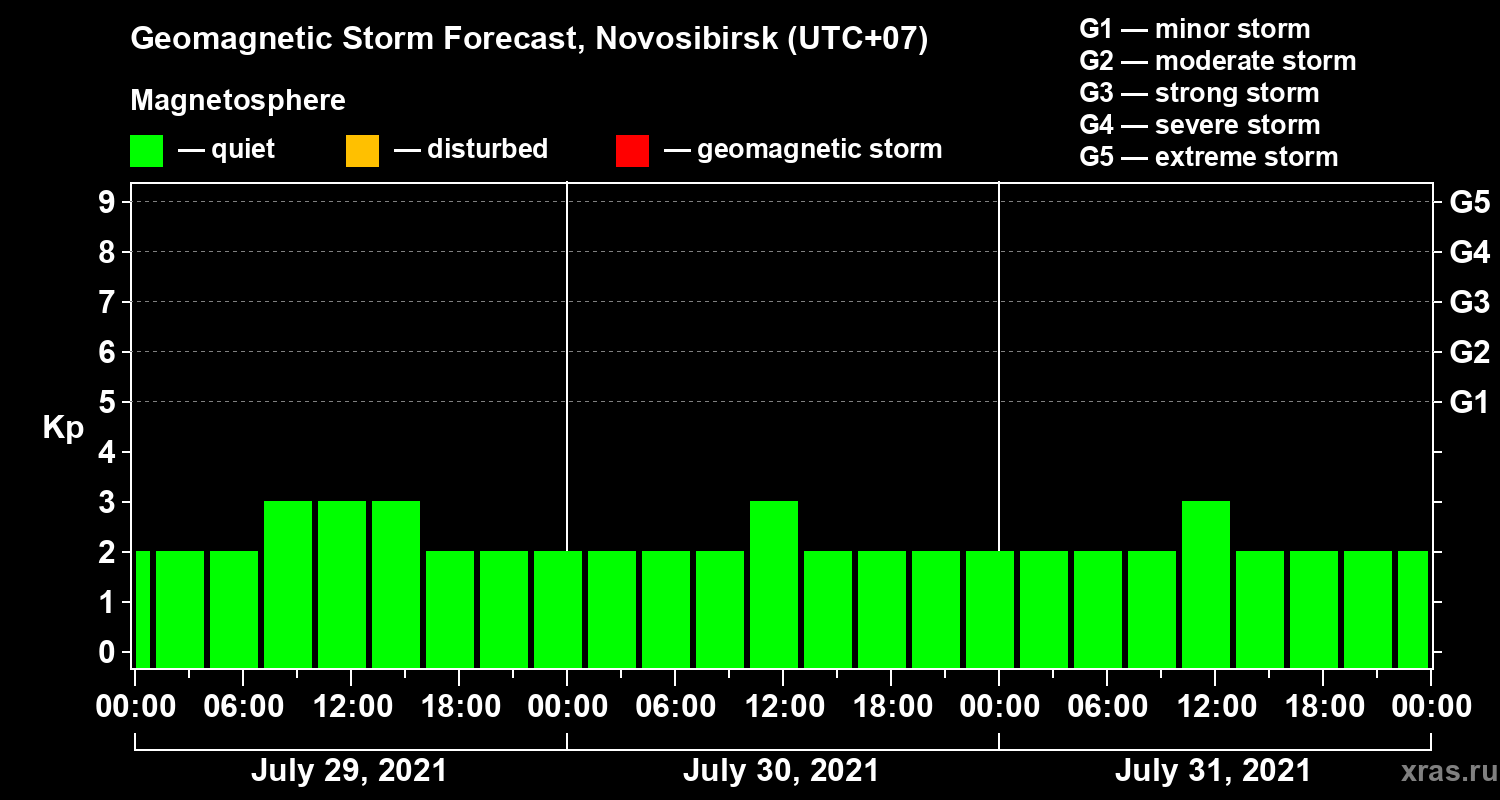 Geomagnetic activity forecast in Novosibirsk — Jul 29, 2021
