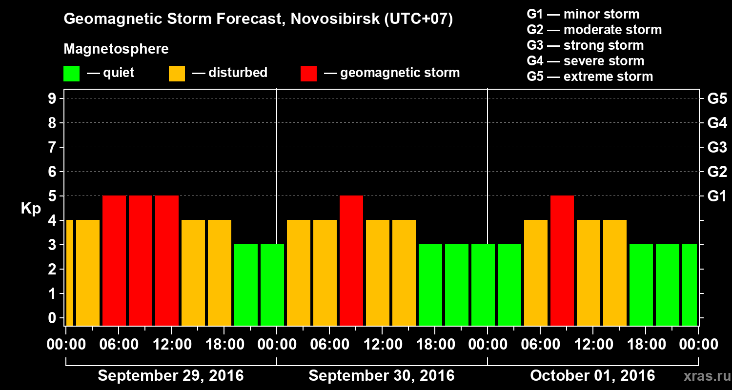 Geomagnetic storm forecast in Novosibirsk for Sep 29, 2016