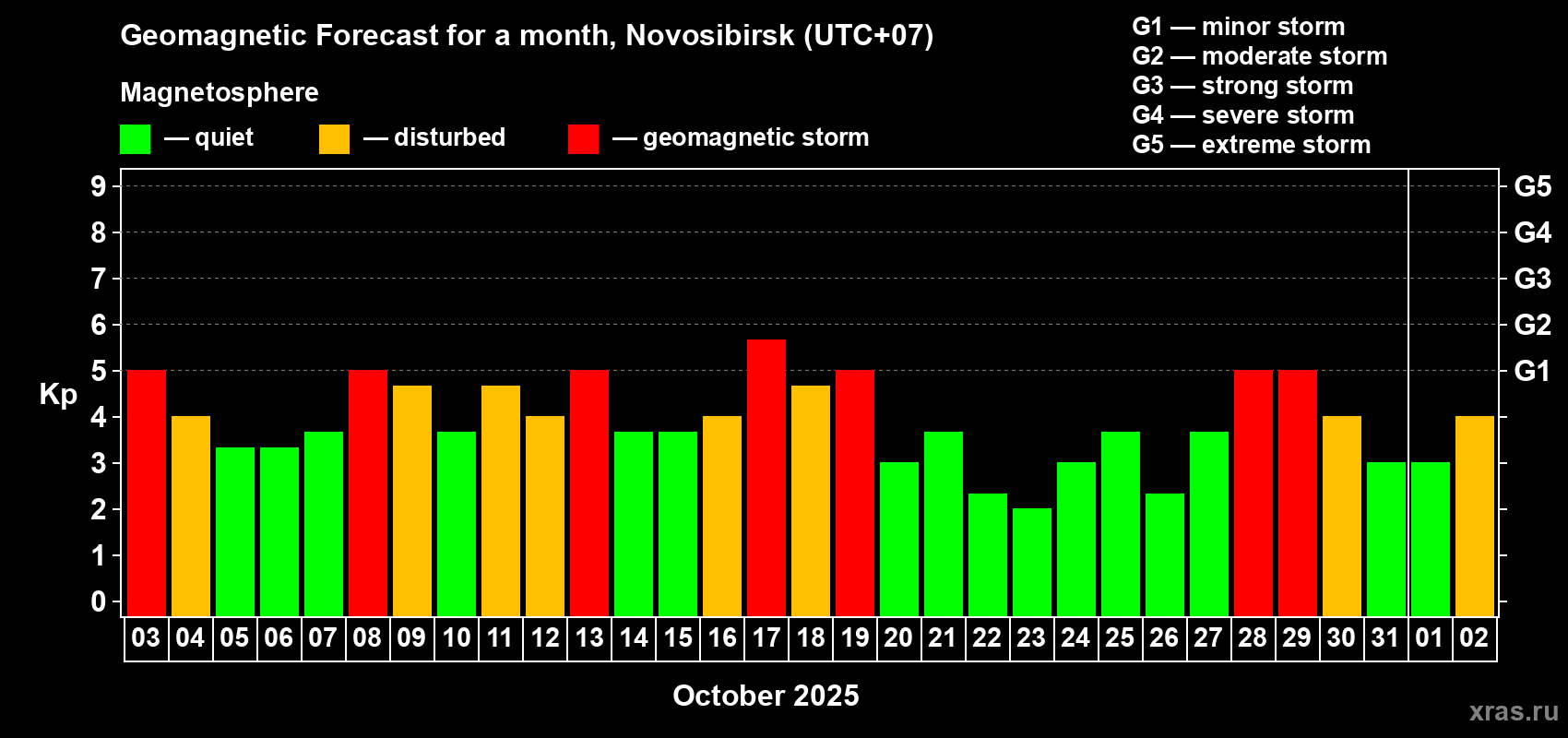 Geomagnetic storm forecast in Novosibirsk for Oct 03, 2025