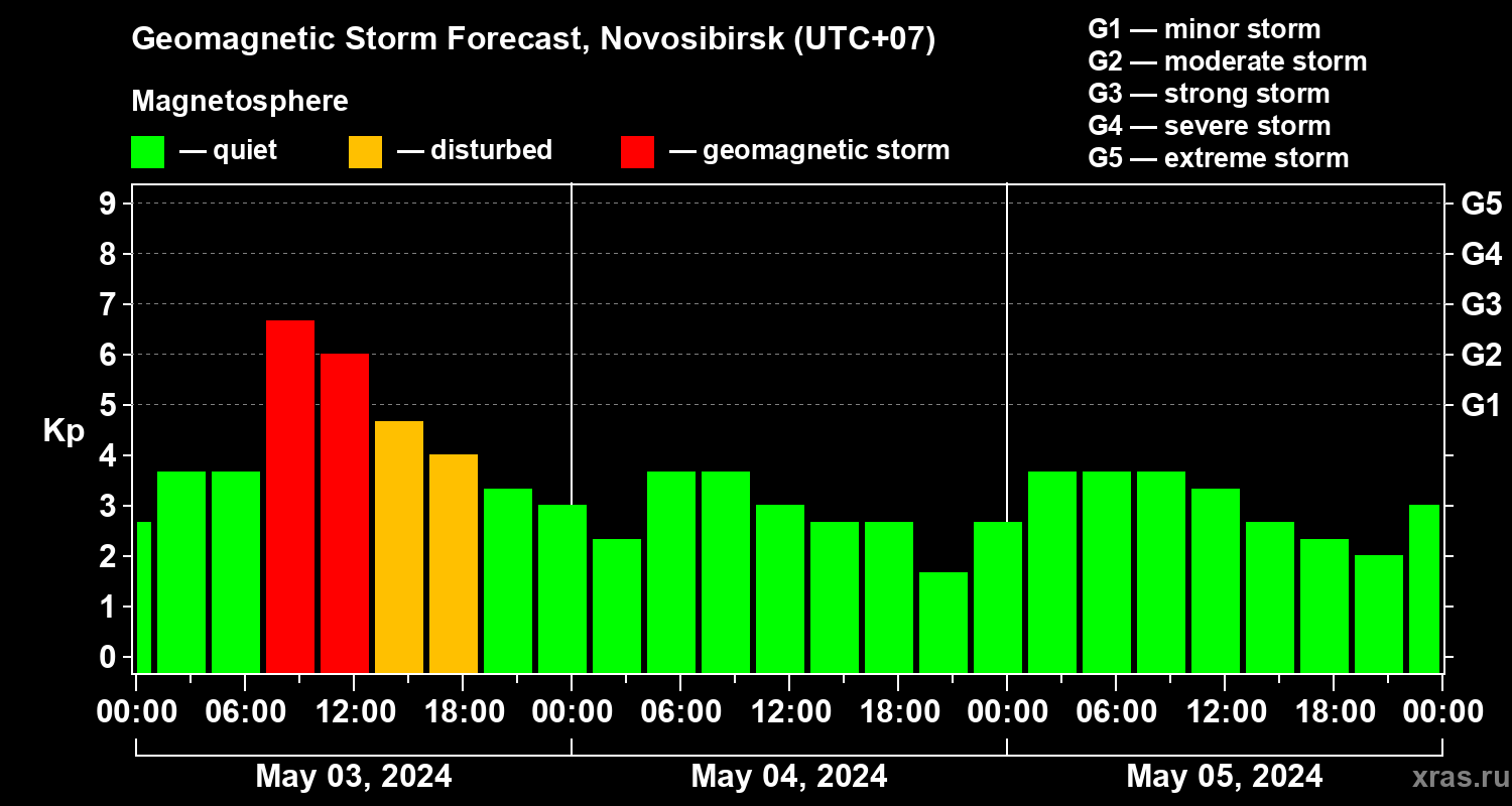 Geomagnetic activity forecast in Novosibirsk — May 03, 2024