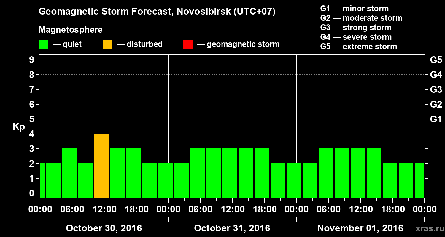 Geomagnetic storm forecast in Novosibirsk for Oct 30, 2016