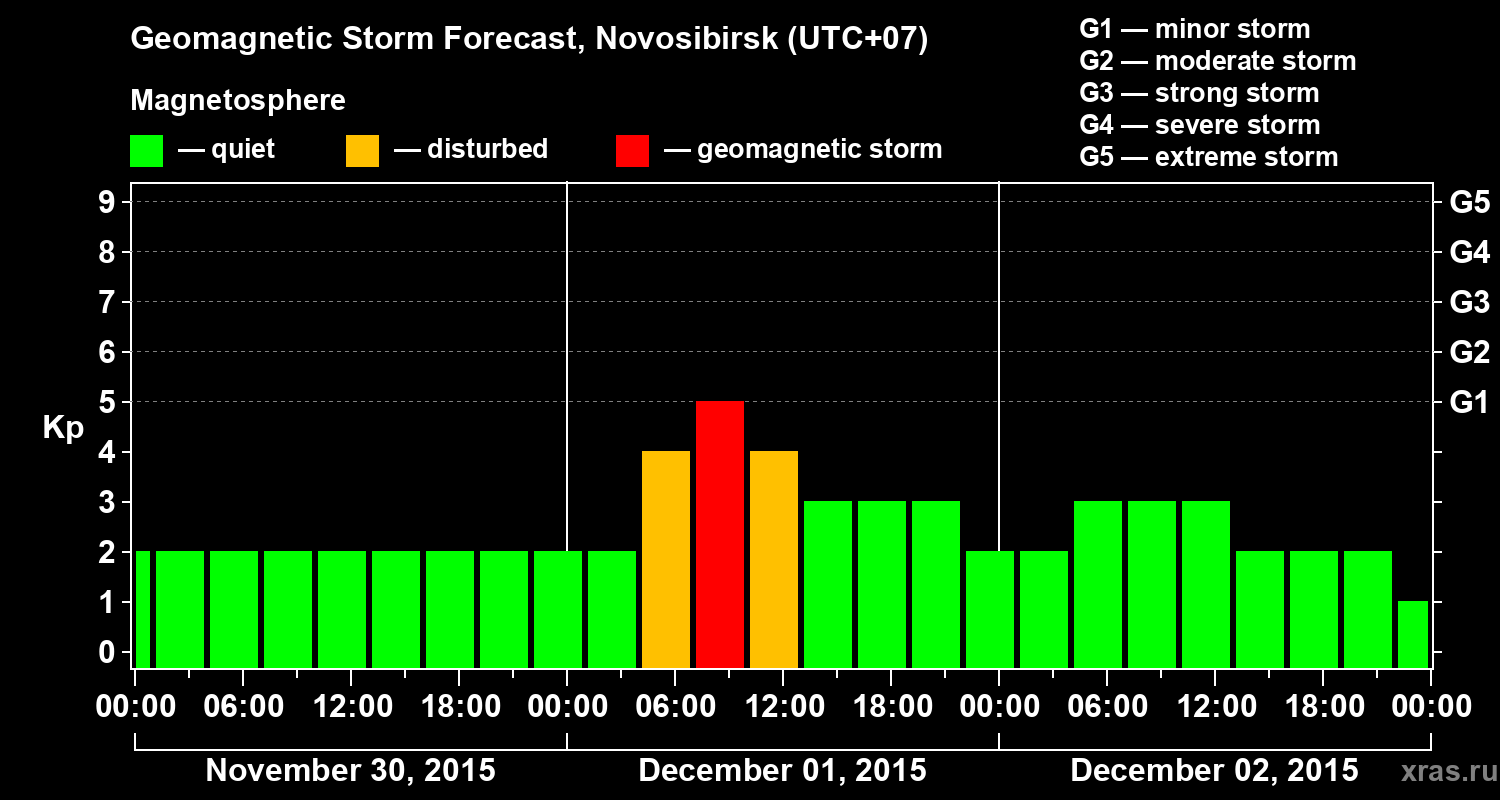 Geomagnetic activity forecast in Novosibirsk — Nov 30, 2015