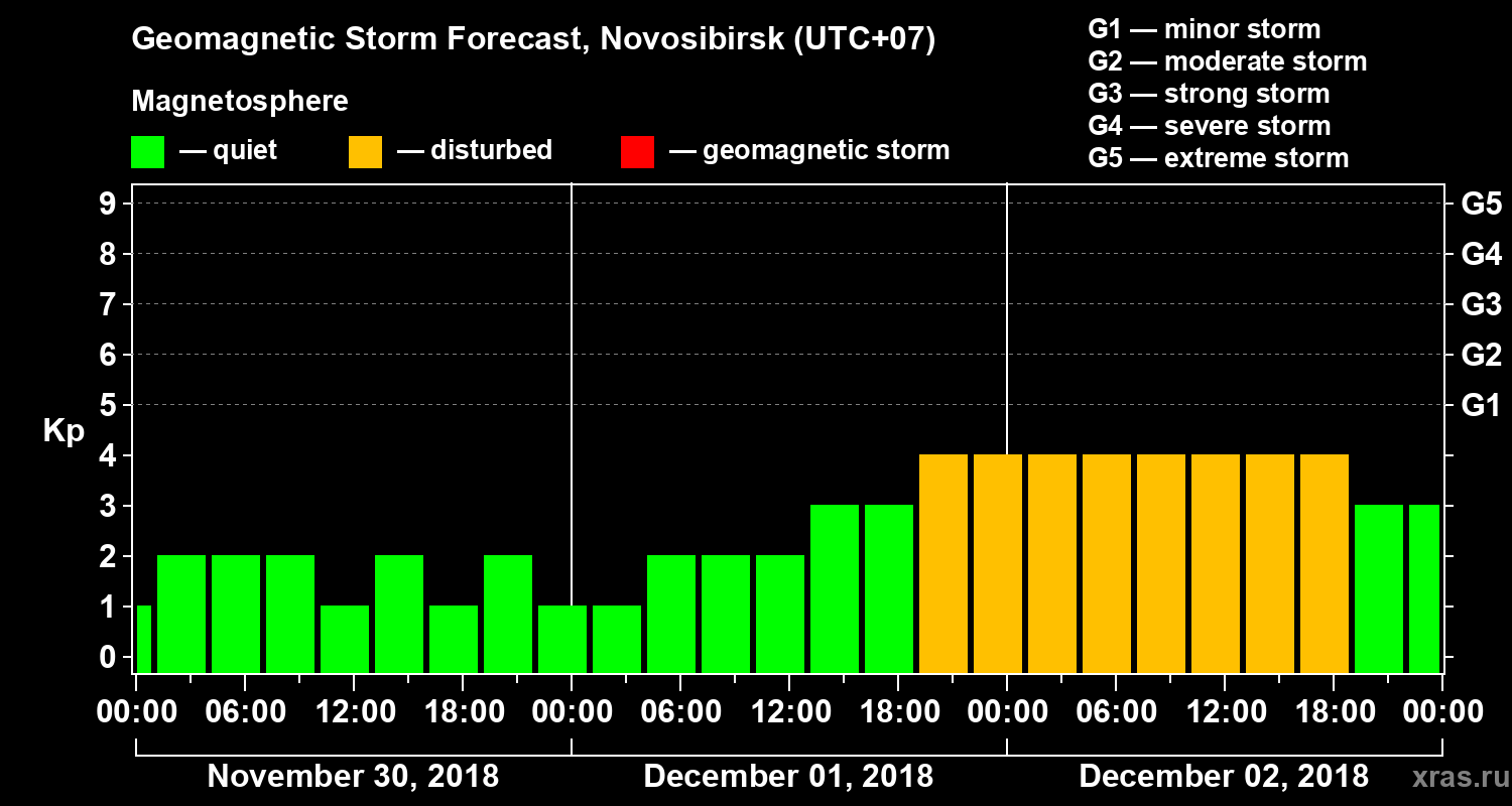 Geomagnetic storm forecast in Novosibirsk for Nov 30, 2018