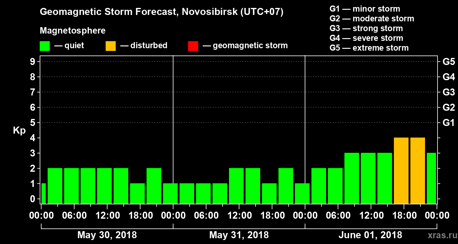 Geomagnetic activity forecast in Novosibirsk — May 30, 2018