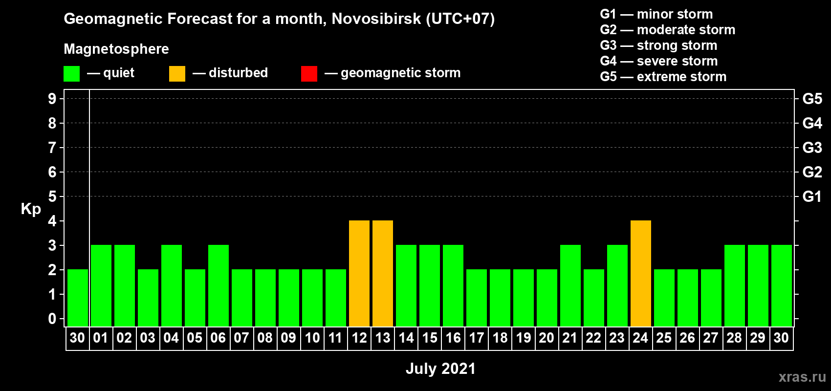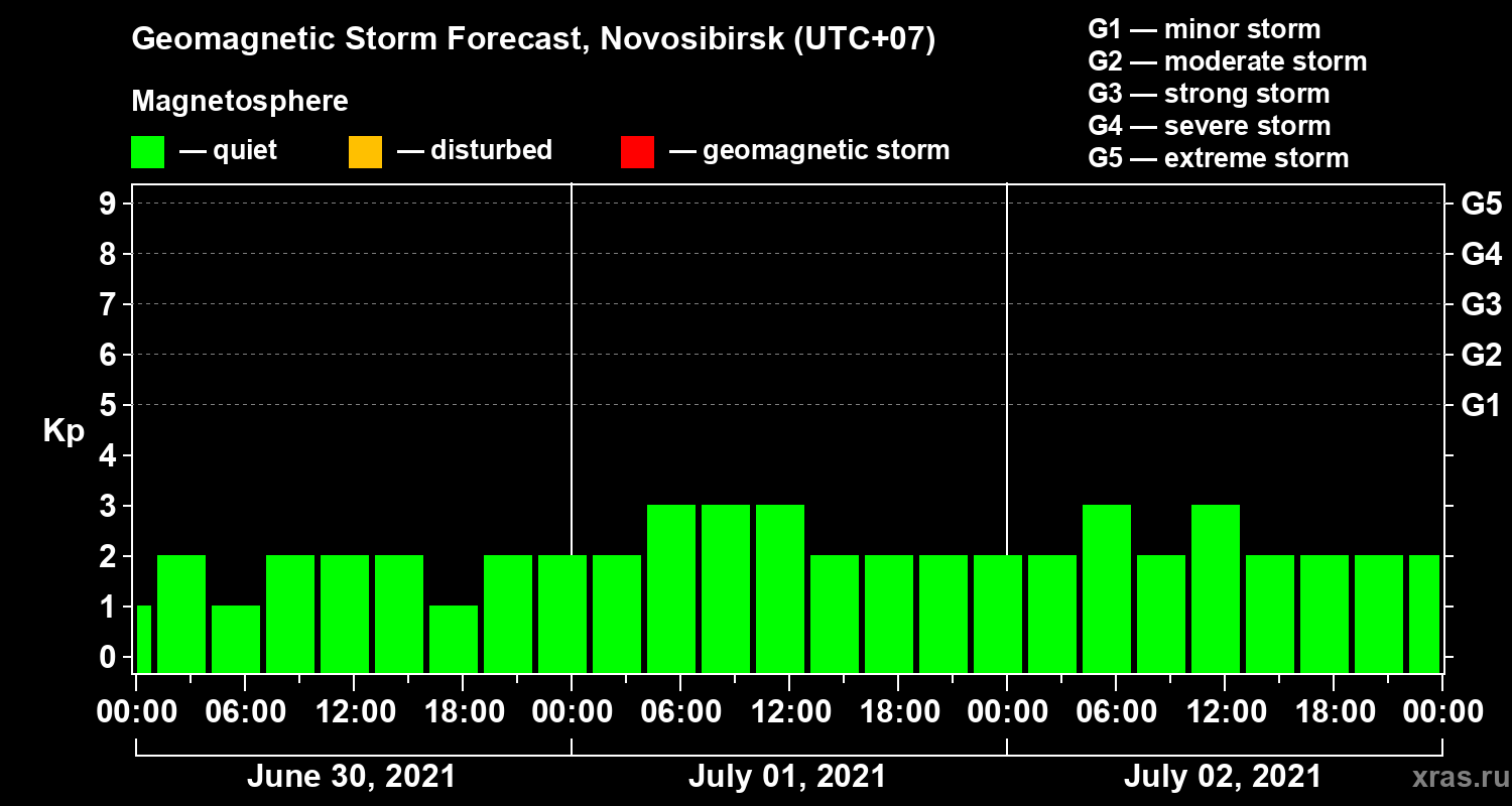 Geomagnetic activity forecast in Novosibirsk — Jun 30, 2021