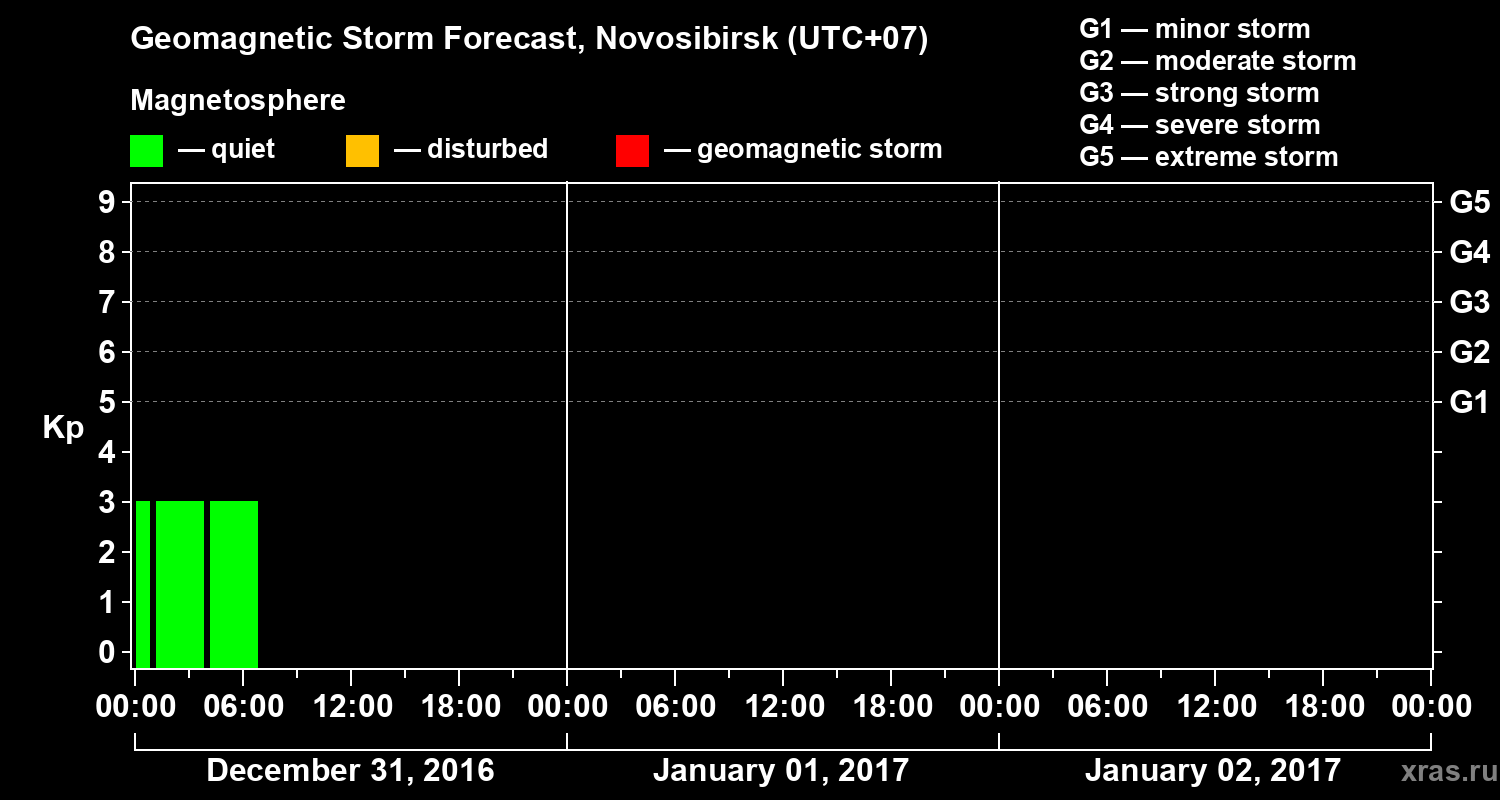 Geomagnetic storm forecast in Novosibirsk for Dec 31, 2016
