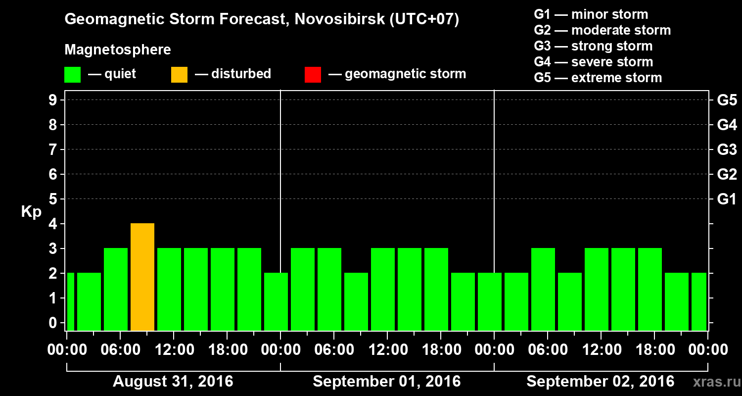 Geomagnetic storm forecast in Novosibirsk for Aug 31, 2016