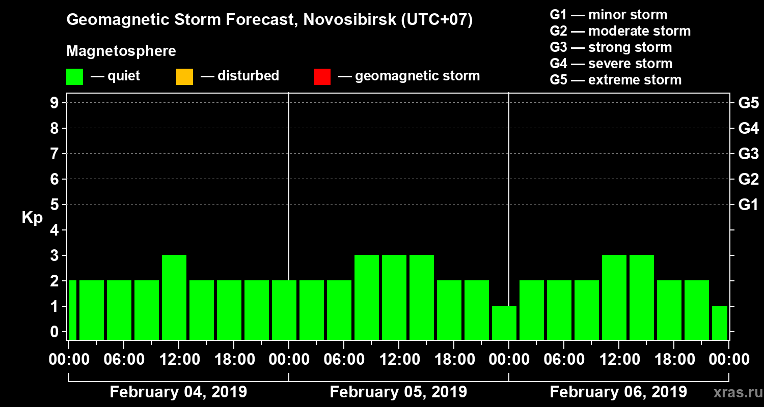 Geomagnetic activity forecast in Novosibirsk — Feb 04, 2019