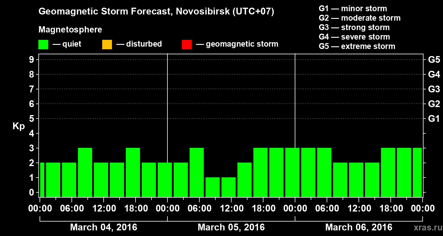 Geomagnetic storm forecast in Novosibirsk for Mar 04, 2016