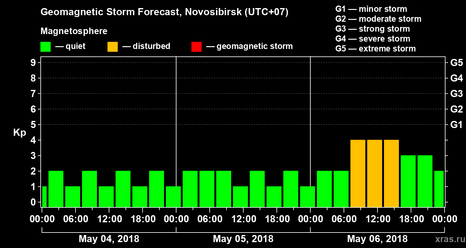 Geomagnetic activity forecast in Novosibirsk — May 04, 2018